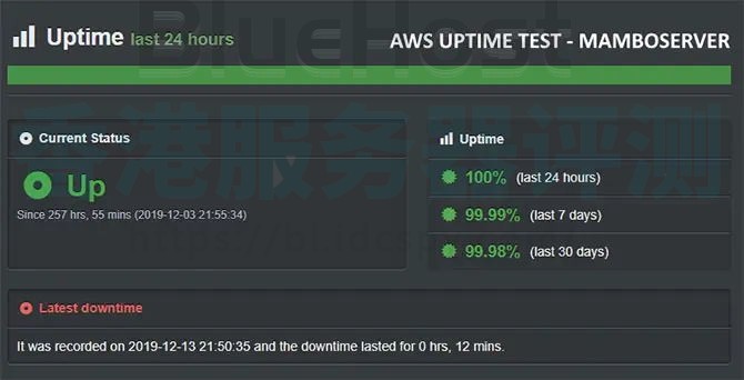 在我们的测试期间,BlueHost与亚马逊虚拟主机有99.99%的时间都在运行。