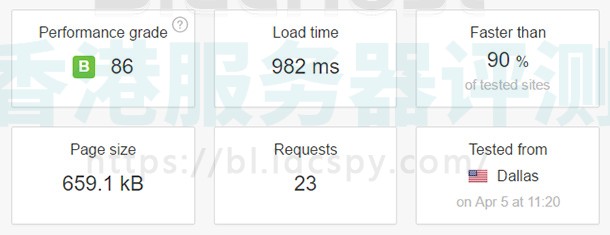 BlueHost网站加载了689毫秒的时间,它比94%的测试站点快;而InMotionHosting网站需要982毫秒的加载时间,比90%的测试网站要快。