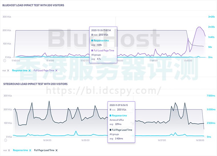 BlueHost和SiteGround都提供99.99%的正常运行时间,真实运行时间如何,我们看下评测数据。