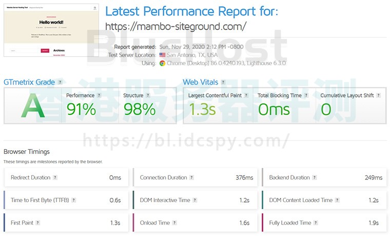 BlueHost拥有23个数据中心,遍布美国,中国香港、印度和欧洲,采用电信CN2线路,再加上支持全球CDN加速技术,所以国内外访问速度都有一个很好的保障,具体测试结果如下: