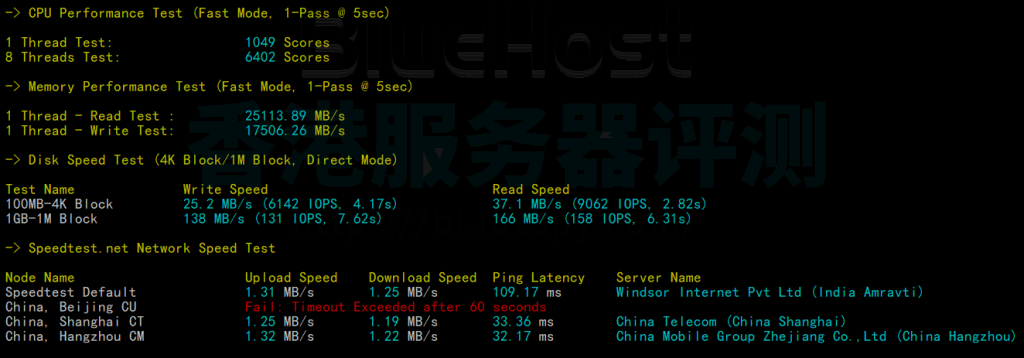 BlueHost香港服务器有Linux和Windows两种操作系统,全新升级电信CN2直连线路,最低配置4GB内存,1000GB空间,5M带宽,不计流量,具体方案配置如下。