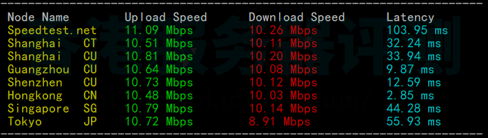 2、上传下载速度:平均速度在10M,和配置方案给的10M带宽是相符合的。