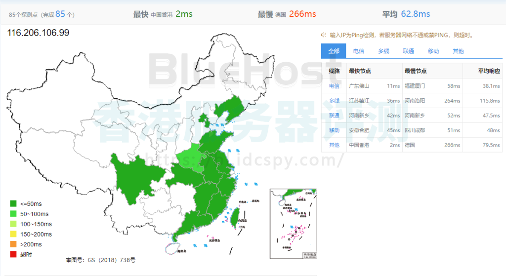 BlueHost是BlueHost家爆款方案之一,许多国内用户建站把BlueHost香港主机当做第一选择。相信大家在选择BlueHost香港主机建站的时候,最关心的一个问题就是速度,因为速度直接关系到网站的访问从而影响到网站用户体验。那么BlueHost香港虚拟主机国内快吗?BlueHost香港主机速度平均在40ms-50ms,国内不同地区访问速度快慢会有些差异。
