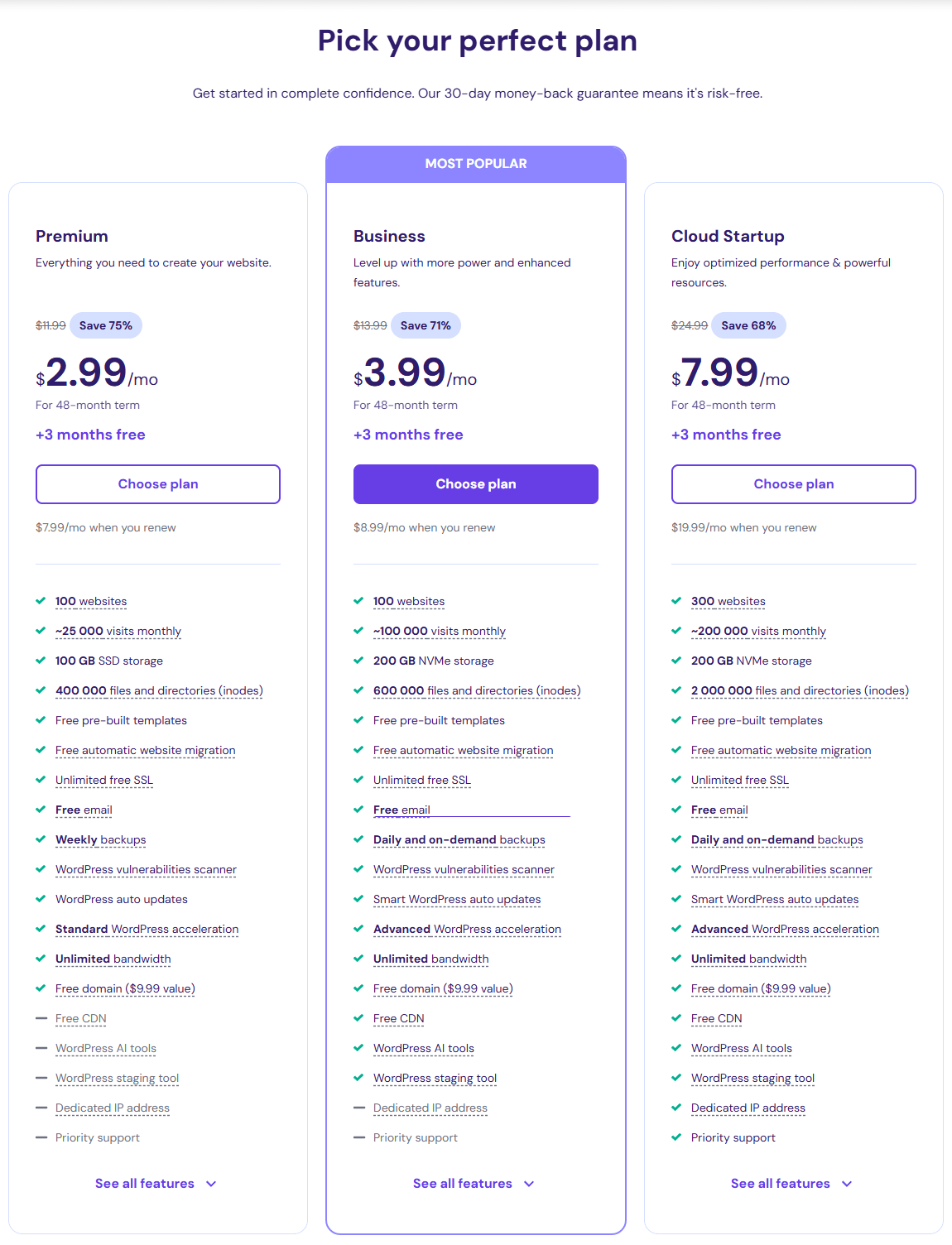 Hostinger虚拟主机有三种方案可供选择: