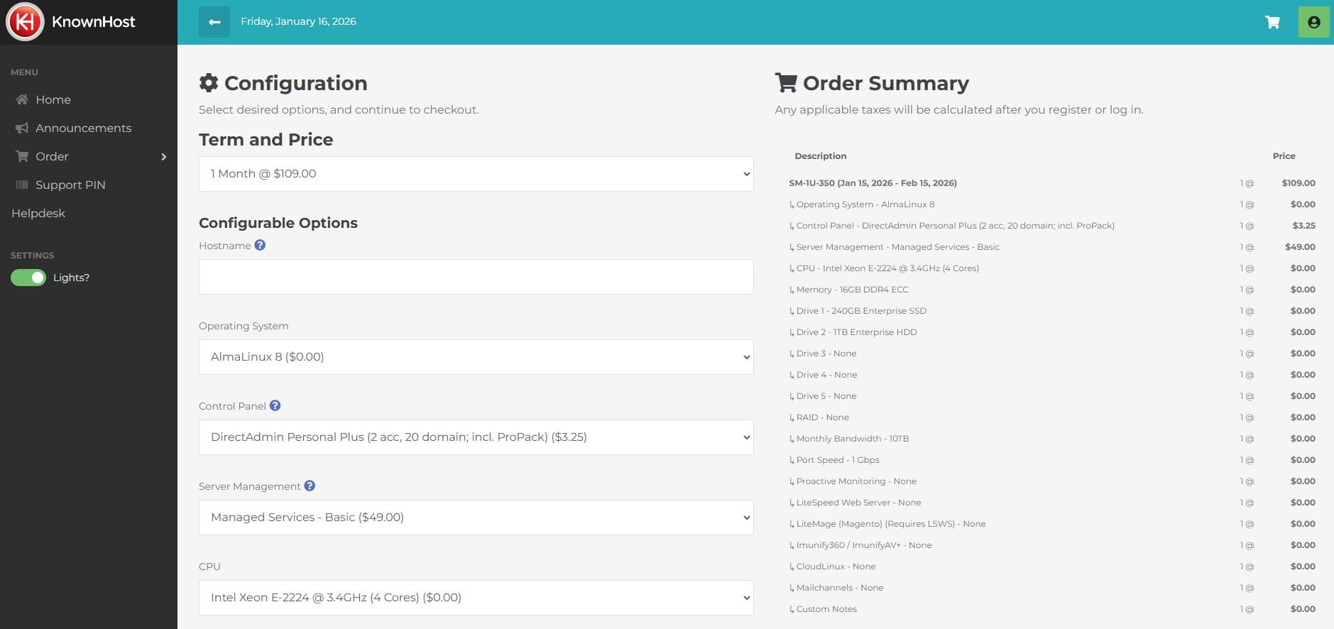 KnownHost位于亚特兰大数据中心,支持英特尔和AMD处理器,每月带宽起步1Gbps,性价比较高,常处于供不应求状态。目前KnownHost不仅针对美国服务器进行了少量补货,还推出了低至六折的优惠折扣码,其中4核、16GB、240GB/1TB硬盘配置每月仅$95.85/月,续费同享。