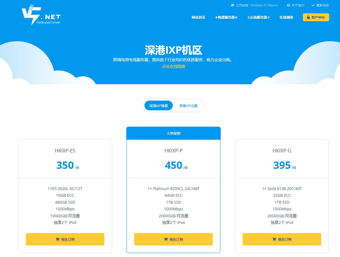预订折扣限30台8.6折,续费同价”深港IXP”服务器方案: