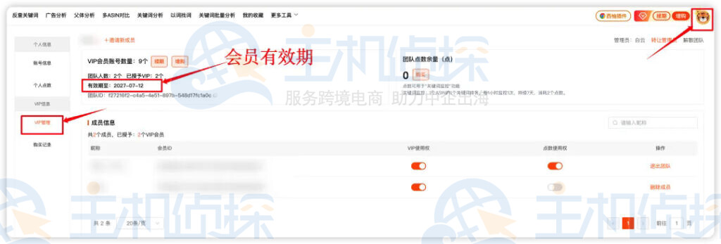 3、点击“右上角头像”进入“VIP管理”页面就能看到赠送的会员时长。