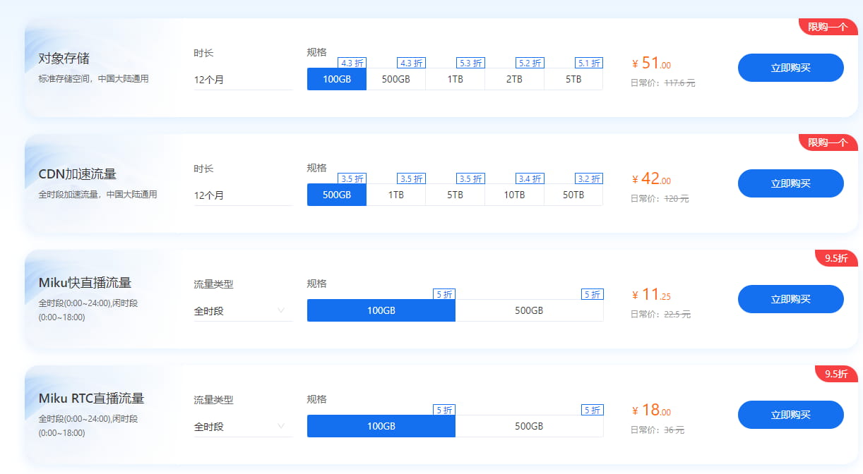 七牛云2026年新春活动开启啦,即日起全栈应用服务器、GPU服务器、AI大模型、CDN、对象存储、云主机等多种产品参与促销。2核2G全栈应用服务器低至20元,根据机房位置不同提供新加坡服务器、、胡志明服务器可选;GPU服务器低至1.11元/卡时;云服务器低至2.7折起;对象存储低至88.2元/年;CDN流量至高减8300元。活动时间有限,快快来参与选购吧。