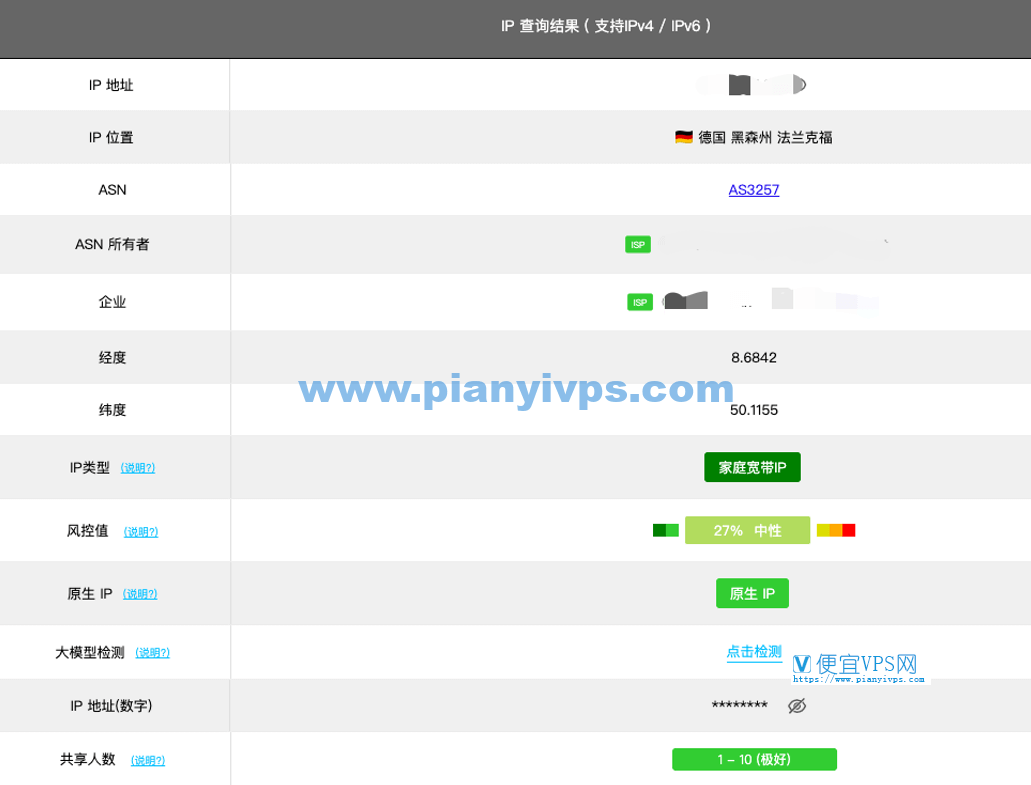 - 原生德国 ISP IP( / ):非隧道、非混播,归属本地运营商,信誉度高、稳定性强