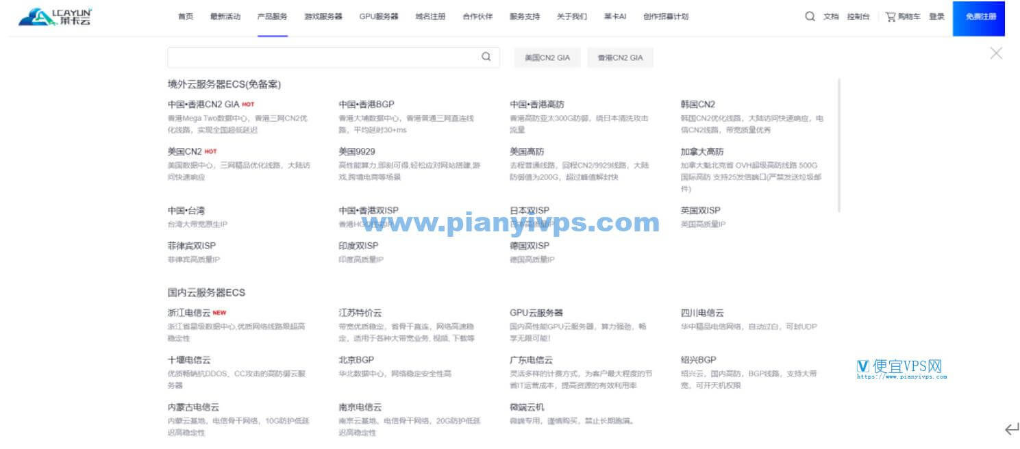 莱卡云还含有众多云产品,包括双 ISP 的产品: