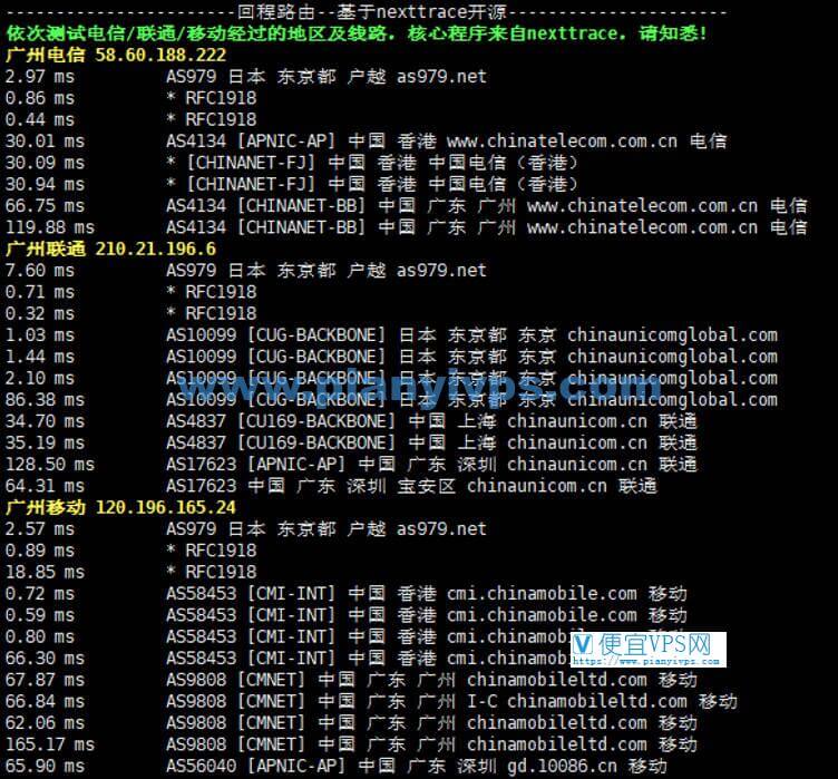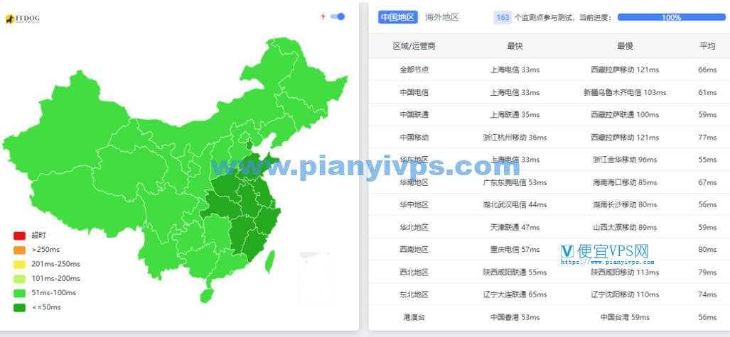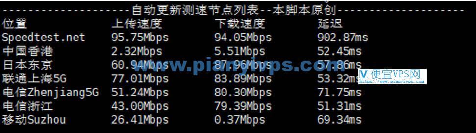 全国延迟测试,可以看到日本 VPS 延迟还是比较低的: