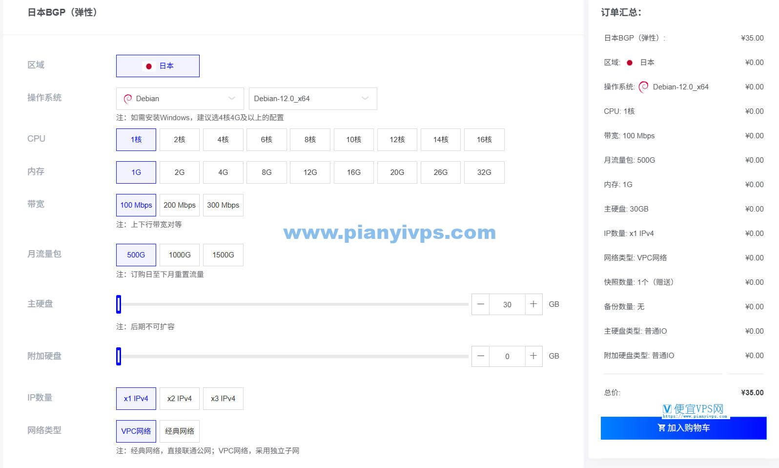 弹性配置可选,月付 35 元起: