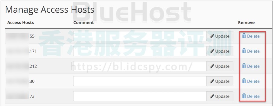 1、在“管理访问主机”部分,找到要删除的 IP 地址,然后点击其旁边的垃圾桶图标。