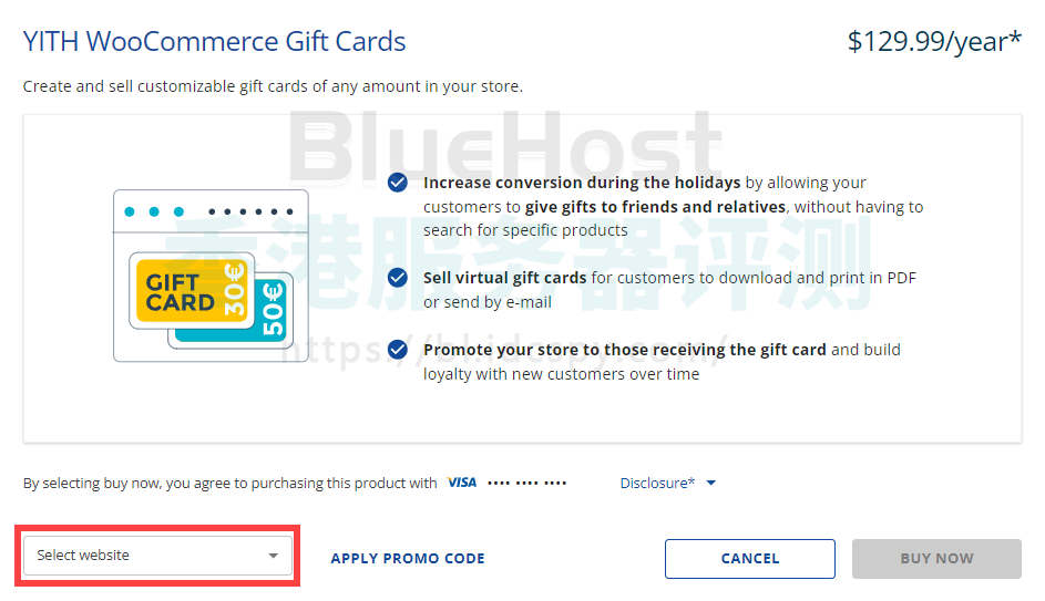 5、在弹窗口中,从下拉列表中选择您的网站。(这是将YITH WooCommerce插件安装到网站上)