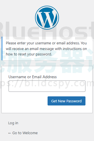 3、输入“WordPress”网站的用户名或电子邮件地址,然后单击“Get New Password”。
