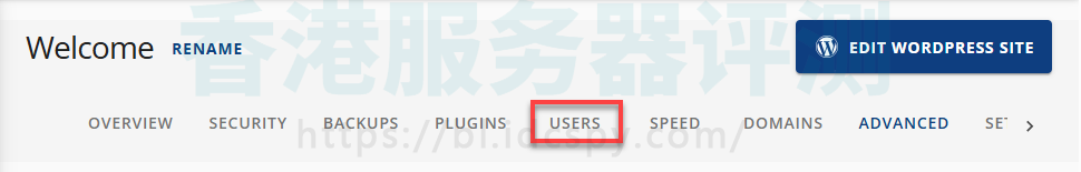 4、在网站概述中,单击“Users”选项卡以管理站点的用户。