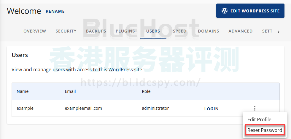 5、找到用户名,单击其旁边的“vertical three-dot (⋮)”图标,然后选择“Reset Password”。