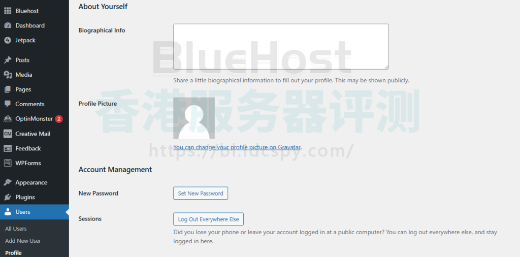 6、在 WordPress 管理员控制面板中,可以修改密码。