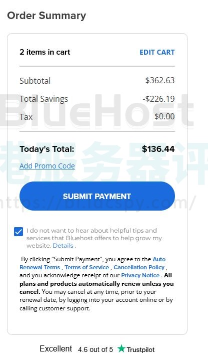 通过本站专属链接访问BlueHost美国站的购买价格:
